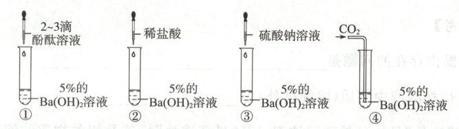 (1)小易发现实验①中滴加酚酞溶液后,溶液变红色,说明$Ba(OH)_2$溶液呈性。