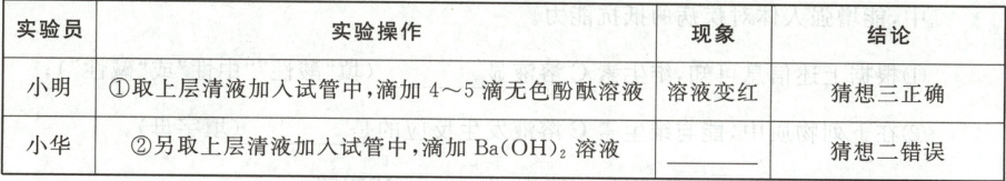 (4)小组同学在进行实验③时看到试管中产生大量白色沉淀,静置后取上层清液进行实验,探究其溶质的成分,大家提出了几种猜想: