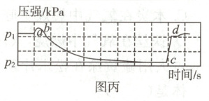 ;气压变化至c点时,进行的实验操$p_1$打开止水夹
