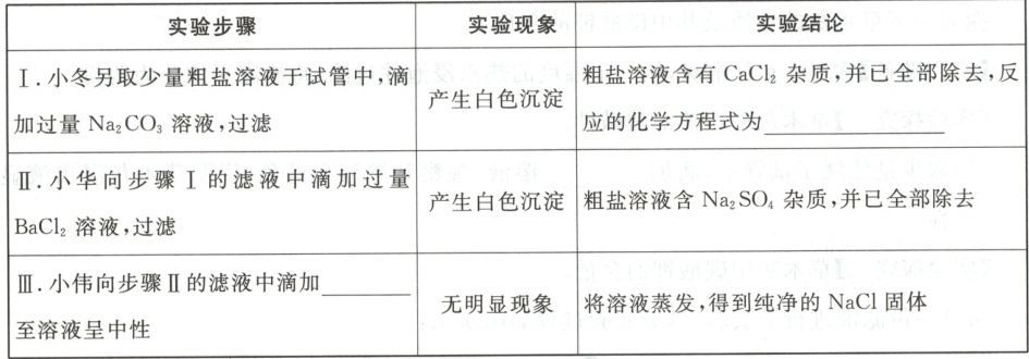 (3)小明向粗盐溶液中加入过量NaOH溶液,未出现明显现象,说明不含杂质。