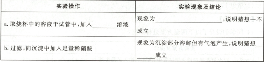 【提出猜想】烧杯内溶液的溶质成分:猜想一,Na₂SO₄、Na₂CO₃;猜想二,;