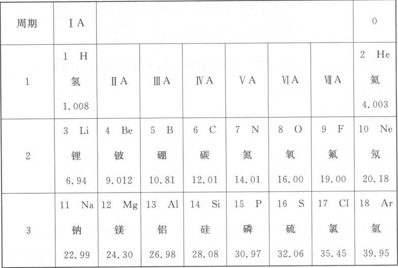 氯原子半径。(4)元素周期表的纵列叫作族,分为主族、副族和0族。主族用字母“A”来表示,共有七个主族,依次用ⅠA族、ⅡA族、ⅢA族、ⅣA族、ⅤA族、ⅥA族、ⅦA族表示。甲同学提出将氦元素放在第ⅡA族,甲同学的依据是