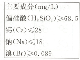 (1)说明中偏硅酸的化学式为$\mathrm{H_2SiO_3}$,其中硅元素的化合价为