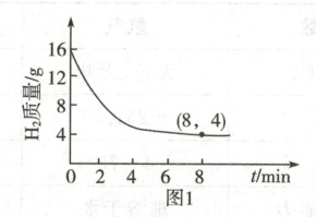 (2)用$CO_{2}$生产甲醇。一定条件下,将$H_{2}$和$a g$$CO_{2}$气体加入某密闭容器中,发生的反应为$CO_{2}+3H_{2}\overset{一定条件}{=}CH_{3}OH+X$,容器中$H_{2}$的质量随时间的变化如图1所示。
