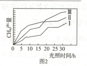 (3)用$CO_{2}$生产$CH_{4}$。$CO_{2}$和水蒸气在不同催化剂的作用下反应,一定时间内,$CH_{4}$产量随光照时间的变化如图2所示。通过该实验,你对催化剂的新认识是。