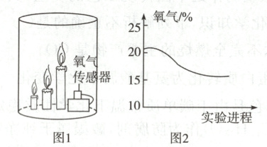 10.(2025·泸州)在密闭玻璃罩内放置三根点燃的蜡烛(图1),观察到长蜡烛先熄灭,接着短蜡烛熄灭,中间蜡烛最后熄灭。传感器测得氧气含量变化如图2。下列解释或结论错误的是 (
