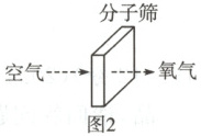 (3)利用分子筛可将氧分子从空气中“筛”出去,氮分子不能通过分子筛,从而获得高浓度的氧气,其原理如图2。由此可知两种分子的大小:$N_2$(填“>”或“<”)$O_2$。