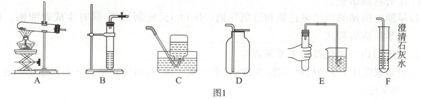 (3)检查装置气密性的现象如图1中E所示,说明该装置的气密性。用D装置收集二氧化碳,验满时应将(填“燃着”或“带火星”)的小木条放到集气瓶口。