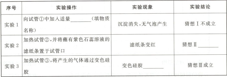 【实验探究】乙同学将灰白色沉淀洗涤、干燥后,分别置于编号为①②③的试管中进行实验: