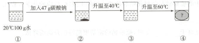 $ g$碳酸钠;升温至$60° C$时,烧杯④中会出现的现象是有晶体析出