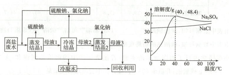 19. (12分)为研究溶解度曲线的应用,学习小组查得资料:某钢铁厂处理高盐废水(含氯化钠、硫酸钠及微量的其他盐)的流程、相关物质的溶解度曲线如图所示。请和小组同学一起研究。