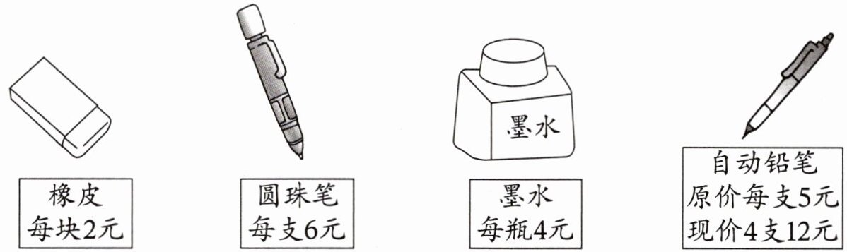 )④买 3 块橡皮和 1 瓶墨水需要的钱数。