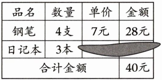 6. (数学应用)下面的票据被墨水弄脏了,请你算出每本日记本多少元。