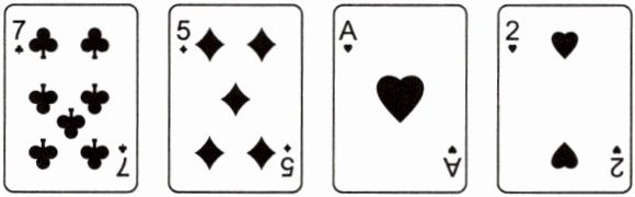 8. 想办法用下面4张扑克牌上的数凑出24。(A表示1)