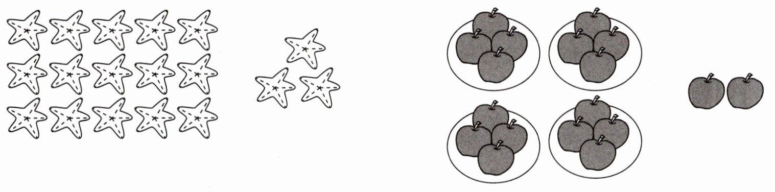 (1)一共有多少个海星? (2)一共有多少个苹果?