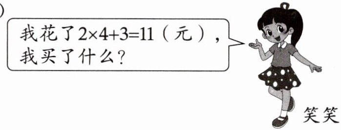 (3)如果让你买两种物品,其中一种物品买4个,计算一共花了多少元,填一填。