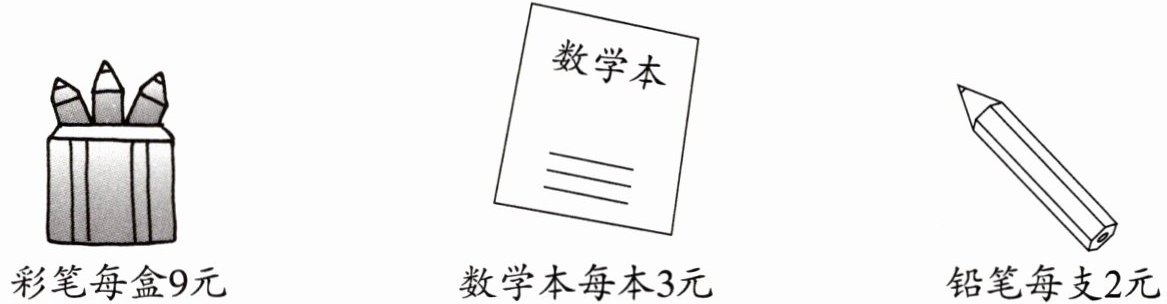 (1)如果笑笑买一盒彩笔和4本数学本,那么一共需要多少元?