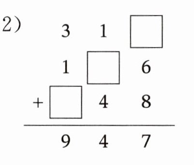 $\begin{array}{r}31□\\1□6\\+□48\\\hline947\end{array}$