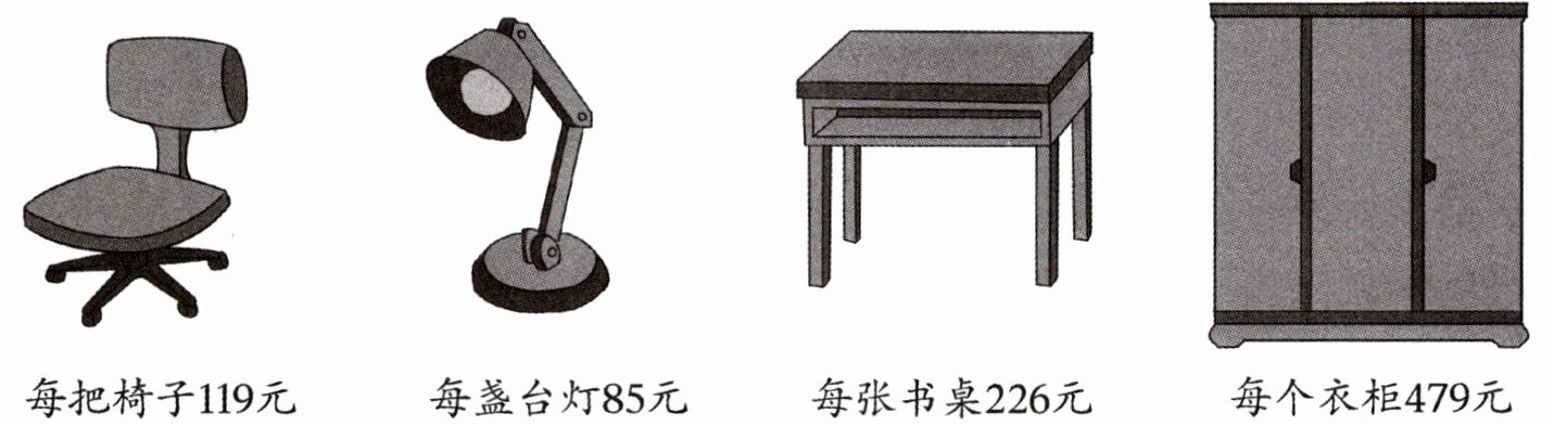 每把椅子119元 每盏台灯85元 每张书桌226元 每个衣柜479元