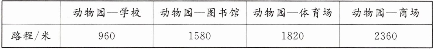 (3)2360-1580=780(米),780米<960米,960-780=180(米),从动物园到学校的路程长,长180米。