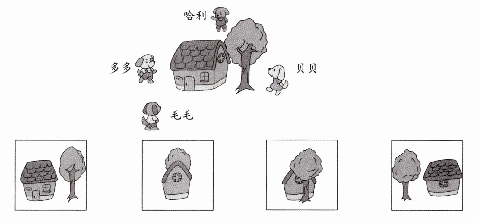 4. 下面四幅图分别是谁看到的?把名字写在()里。