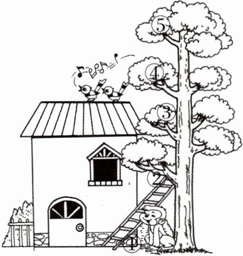 请你用①②③④⑤在小猴子看到的部分画面下方的括号里标出它观察的位置。