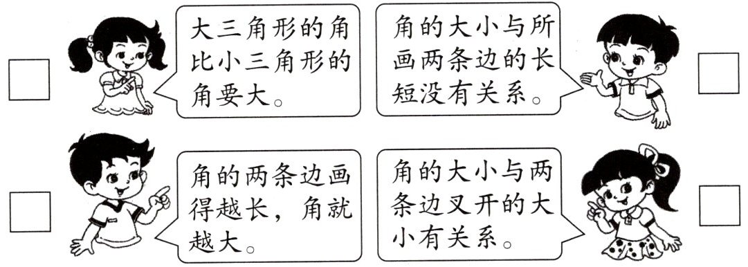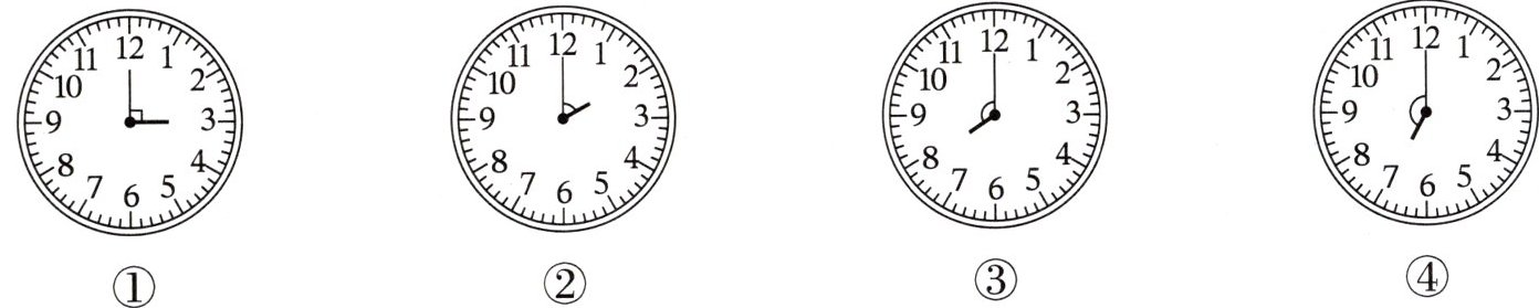 5. 下图钟面上分针和时针所成的角,请你按从大到小的顺序排列。