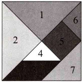 (1)和爸爸妈妈一起说一说,七巧板中每一块板上分别有哪些角?