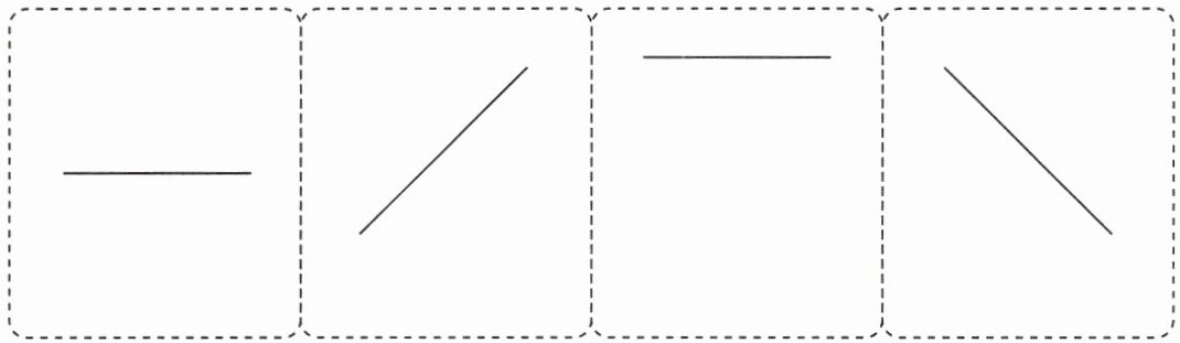 第四个方格:以给出的斜线为一条边,把三角板的一条直角边与斜线重合,另一条直角边向下,沿此直角边画线,形成直角。