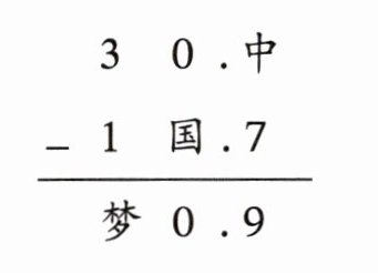 $\begin{array}{r}30.中\\-1国.7\\\hline梦0.9\end{array}$