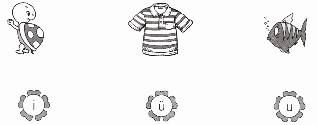 (假设插图1从左到右依次为乌龟、衣服、鱼,连线为:乌龟-u,衣服-i,鱼-ü)