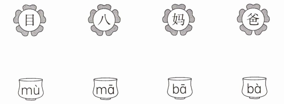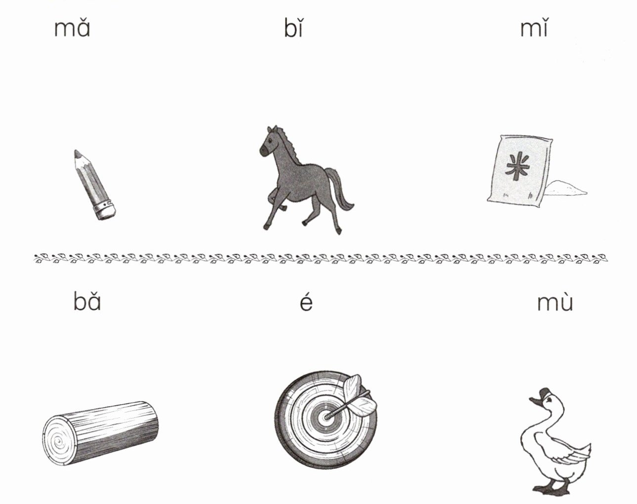 mǎ—马;bǐ—铅笔;mǐ—米袋;bǎ—靶;é—鹅;mù—木头