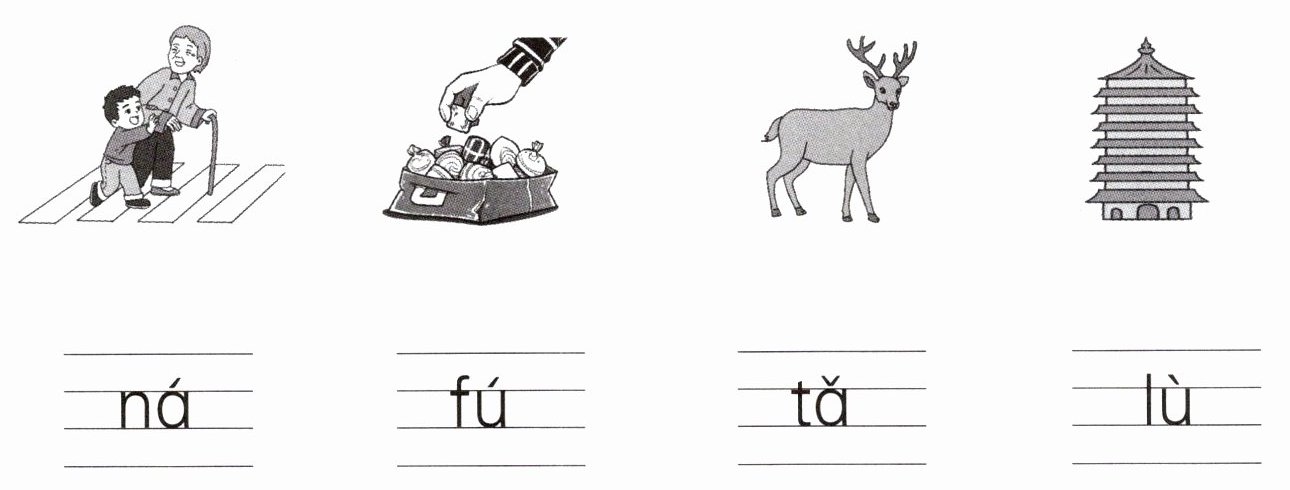 (第一幅图连fú,第二幅图连ná,第三幅图连lù,第四幅图连tǎ)