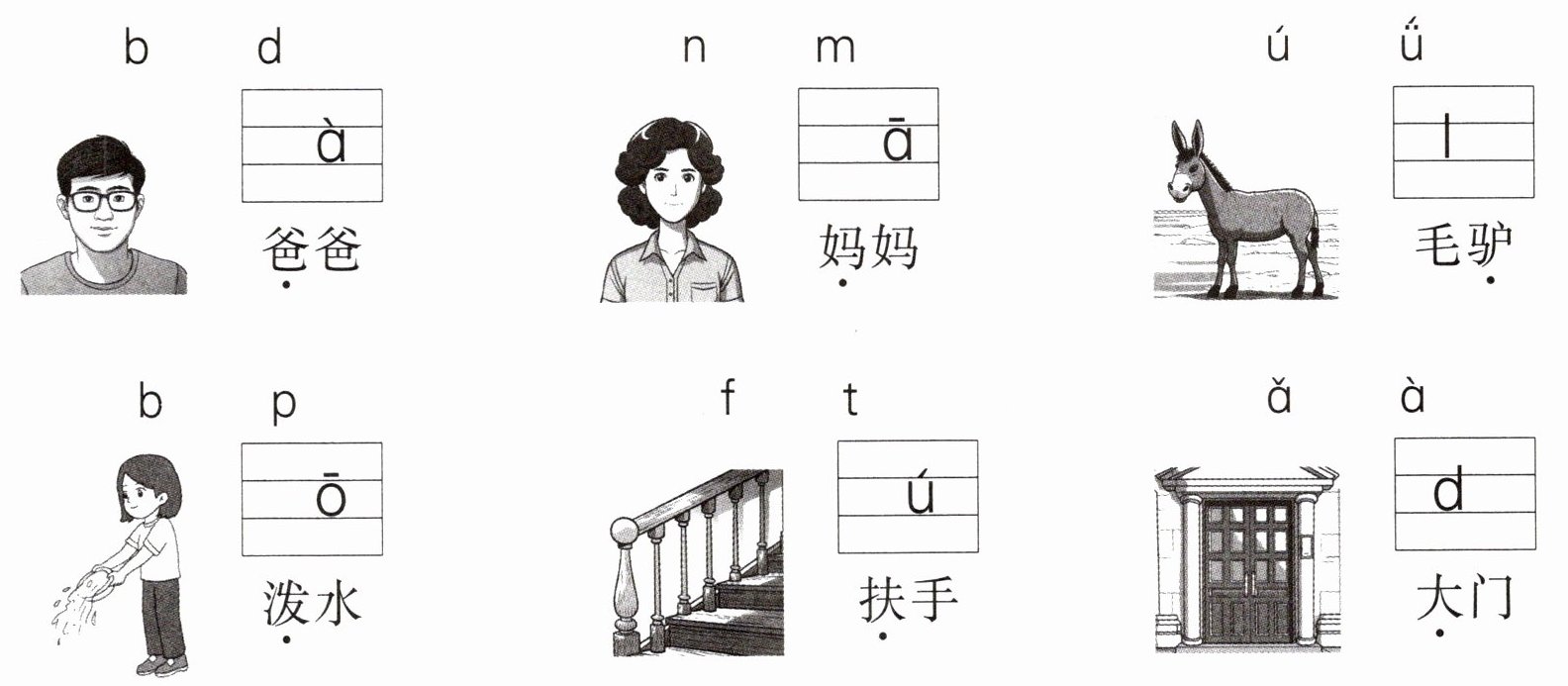 单韵母:a o e i u ü;声母:p d f b m t n l;介母:i u ü
