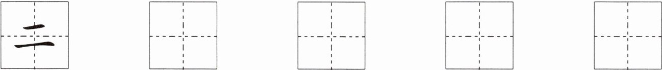 在第二个田字格中写“二”(第二横位于第一条横线下方)。