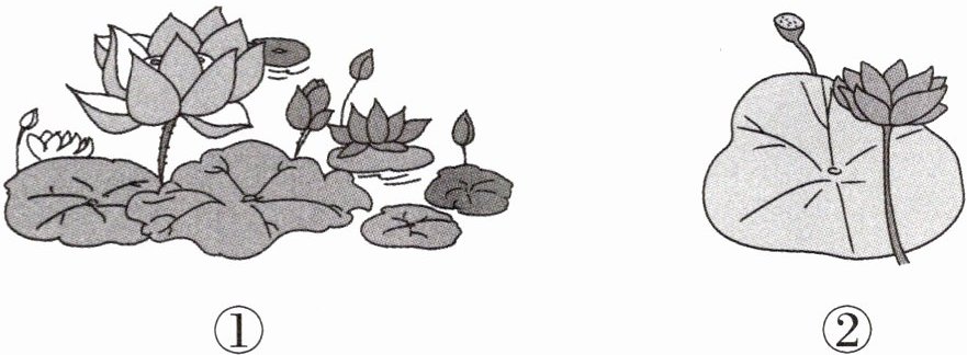 1. 下面哪一幅图表示了“莲叶何田田”的意思?( )。(填序号)