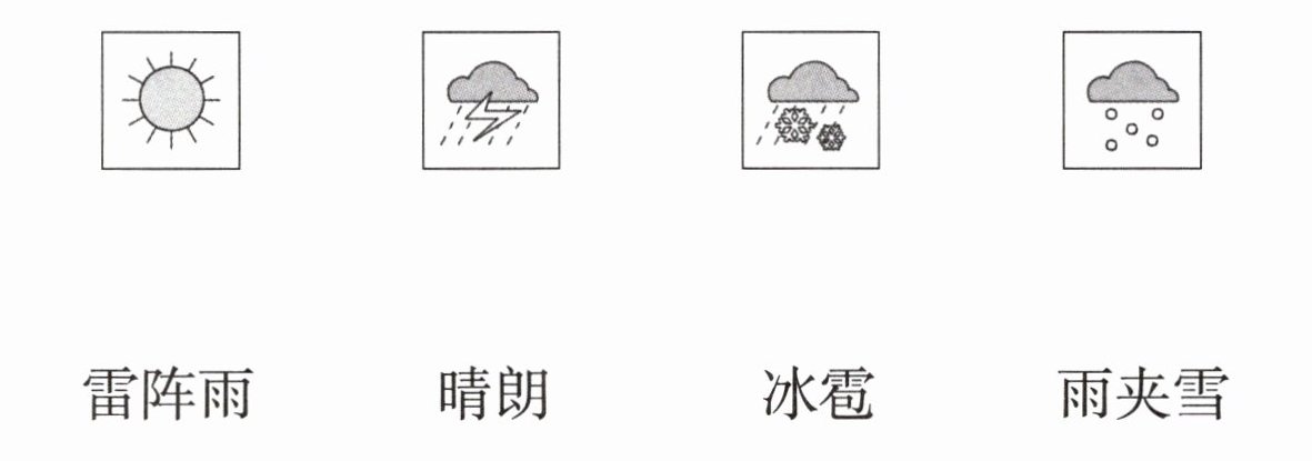 插图1-晴朗,插图2-雷阵雨,插图3-雨夹雪,插图4-冰雹