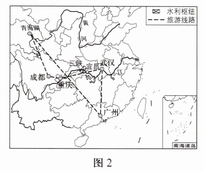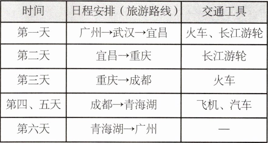 4. “十一”黄金周是旅游的旺季,图2是广州某中学生“十一”期间随旅行团的旅游路线图,表1为日程安排表。读图及表格资料,完成下列问题。