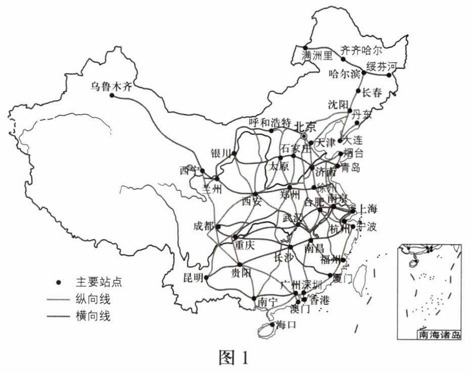 (1)列车从广州驶向武汉,经过的铁路干线是