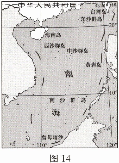 25. 读中国南海诸岛图(图 14),完成下列问题。(7 分)