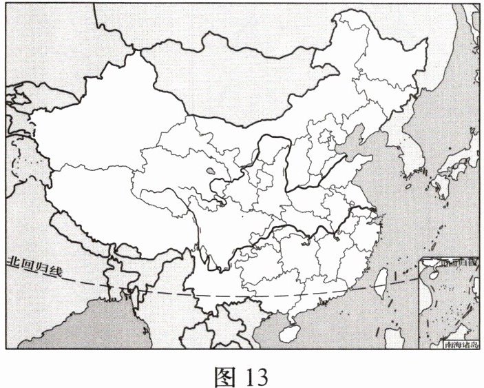24. 读中国省级行政区划图(图 13),完成下列问题。(6 分)
