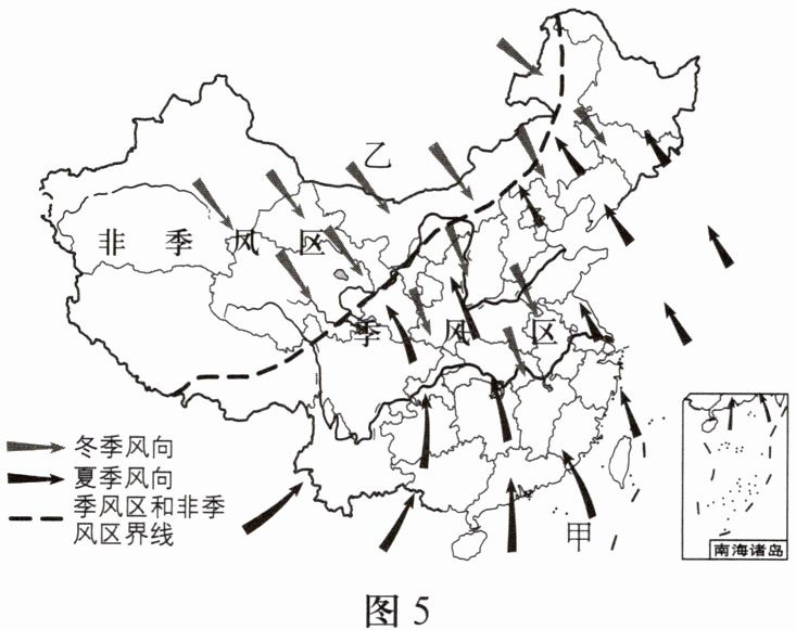 图5为中国季风区与非季风区分布图。读图,完成10-11题。