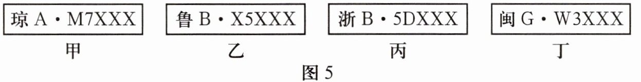 5.图甲、乙、丙、丁中牌照归属地所在省级行政区分