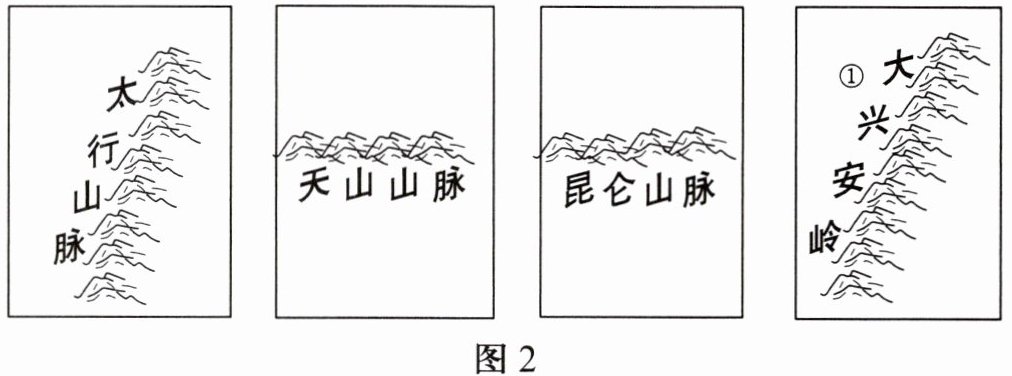 图 2 为中国部分山脉图。读图,完成 5-7 题。