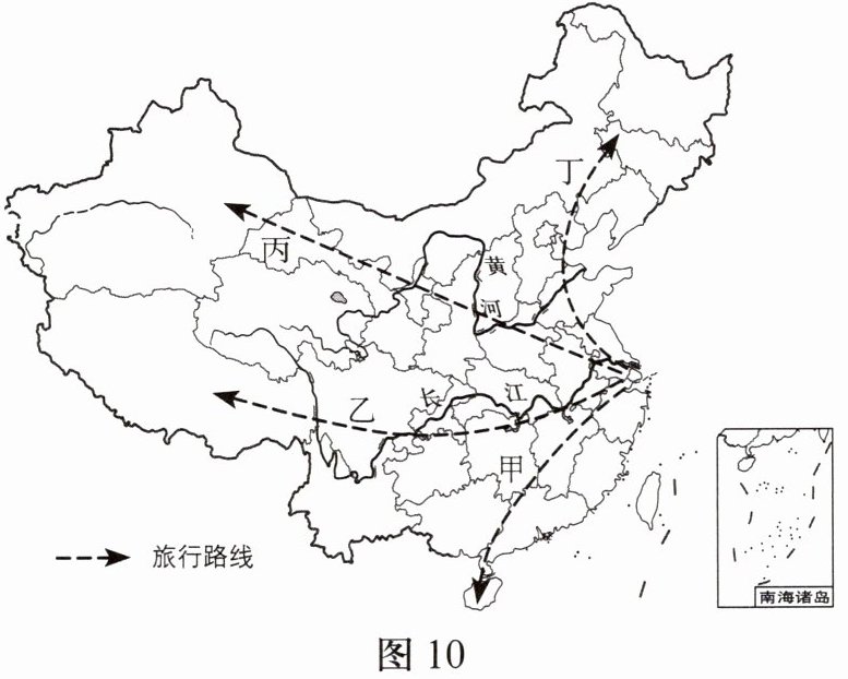 寒假期间,某中学的四名同学沿着四条不同路线开启了旅行。图10示意四条旅行路线。读图,完成1-4题。