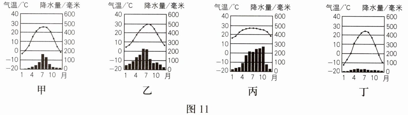 (偏南/偏北)。(4)图11中反映的气候特征与图10中的城市对应正确的是