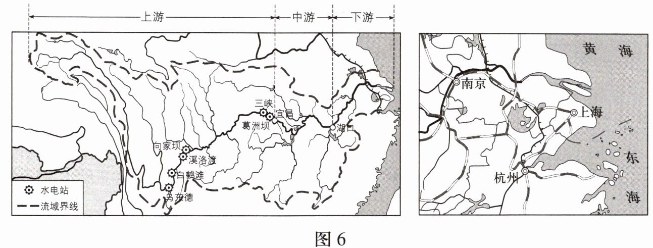 2.由图可知,长江干流水电站及水利枢纽主要分布在长江上游河段,这些地区位于阶梯交界处,水能丰富,从可再生资源和非可再生资源来看,水能资源属于可再生资源。