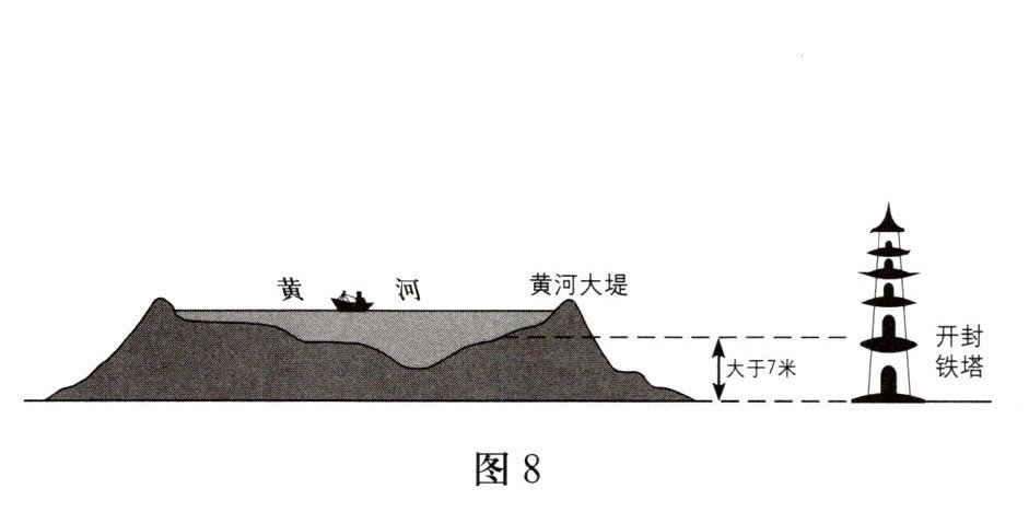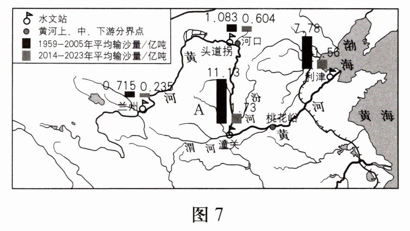 探究一:同学们统计了黄河流域及干流主要水文站不同年份的输沙量(图 7),并绘制了黄河某地区景观图(图 8)。
