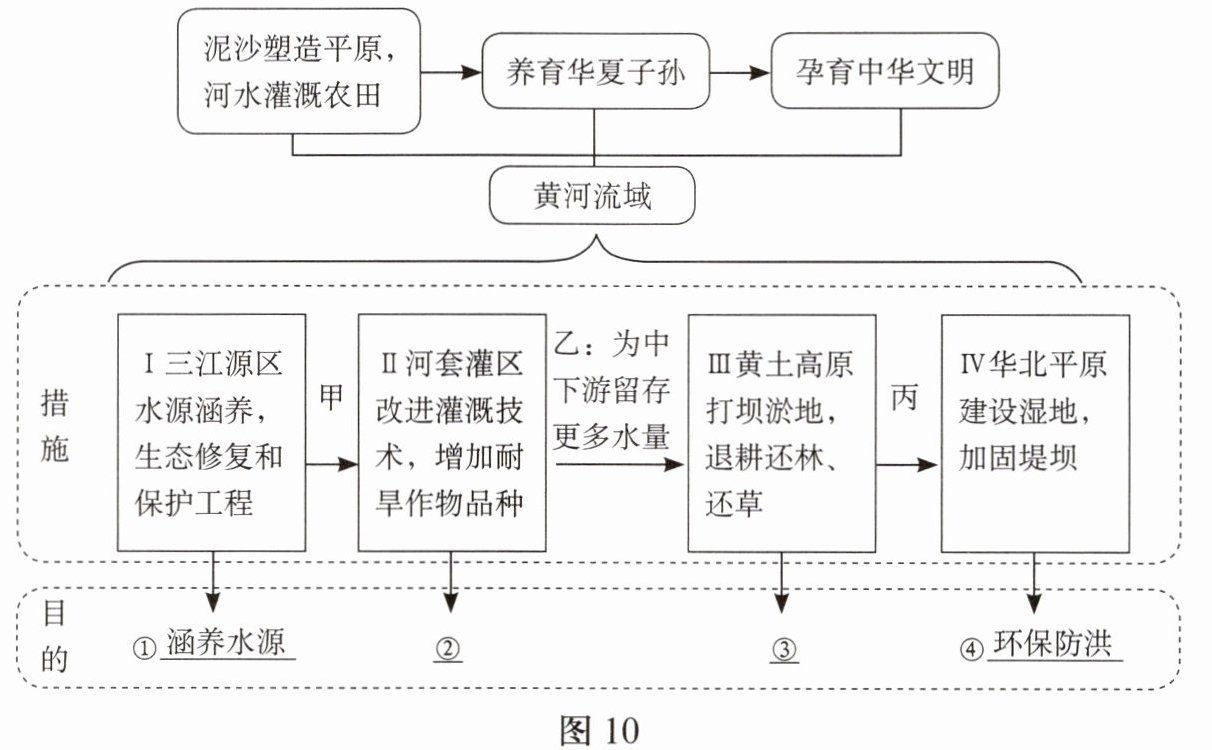 游(河段)。探究二:黄河流域生态保护和高质量发展已列为重大国家战略。同学们根据所学知识绘制了黄河流域协同发展的框图(图 10)。