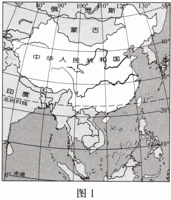 诗歌《我们爱你啊,中国》中写道:“当灿烂的太阳跳出东海的碧波,帕米尔高原依然是群星闪烁;当北国还是银装素裹的世界,南疆早已洋溢着盎然的春色。”读图1,结合相关知识,完成1-4题。